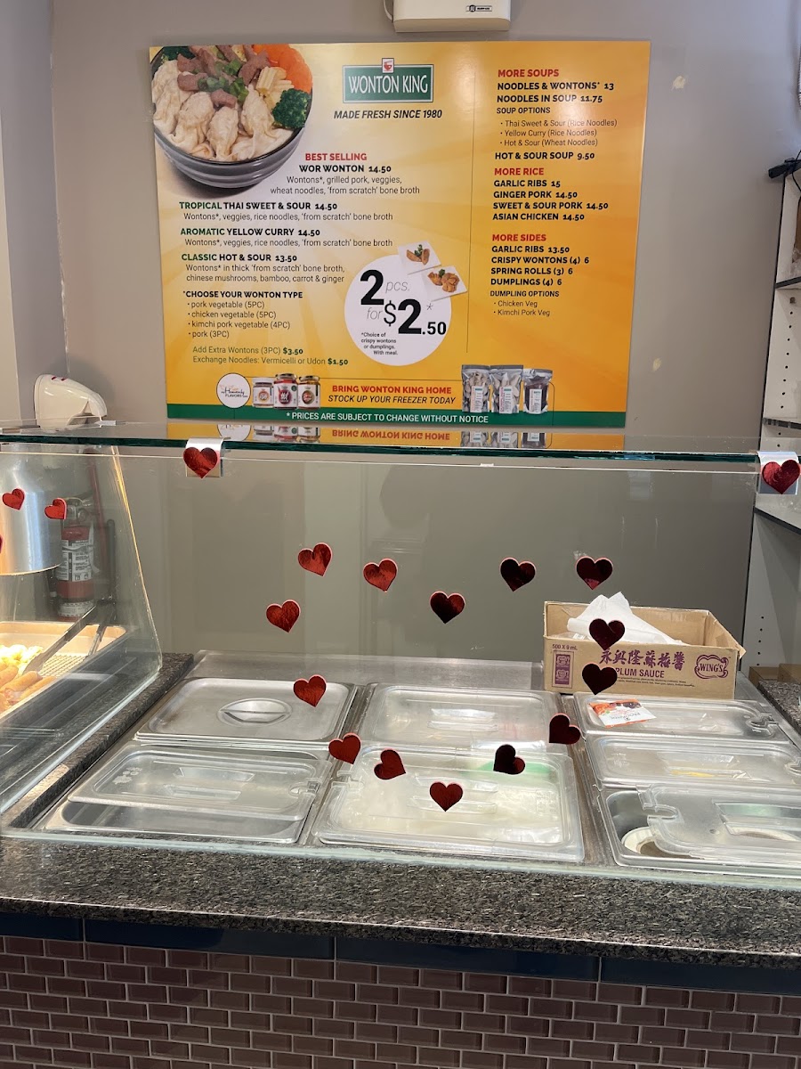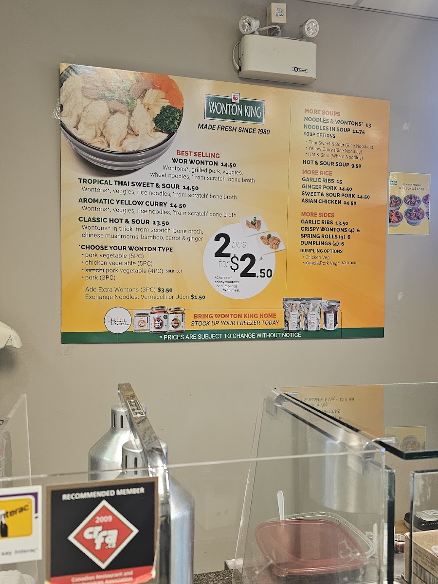 Wonton King - McCall Lake (North), where we invite you to embark on a culinary adventure that celebrates the delightful flavors of traditional wonton cuisine! Located at 3449 12 St NE, Calgary, AB T2E 6S6, our menu is a feast for the senses, featuring a range of mouthwatering dishes that promise to satisfy your cravings. Indulge in our signature Wonton Only Soup with six delectable pieces or dive into the rich and flavorful Pork Wonton Noodle Soup, perfect for a comforting meal. For those seeking a twist, our Kimchi Vegetable Wonton Noodle Soup offers a zesty kick, while the Chicken Vegetable Wonton Noodle Soup is a delightful option for poultry lovers. With a variety of Health & Safety Soups, each packed with your choice of wontons, you're sure to find something that tantalizes your taste buds. Don’t forget to quench your thirst with our refreshing beverages! Join us at Wonton King and taste the specialties that keep our customers coming back for more!